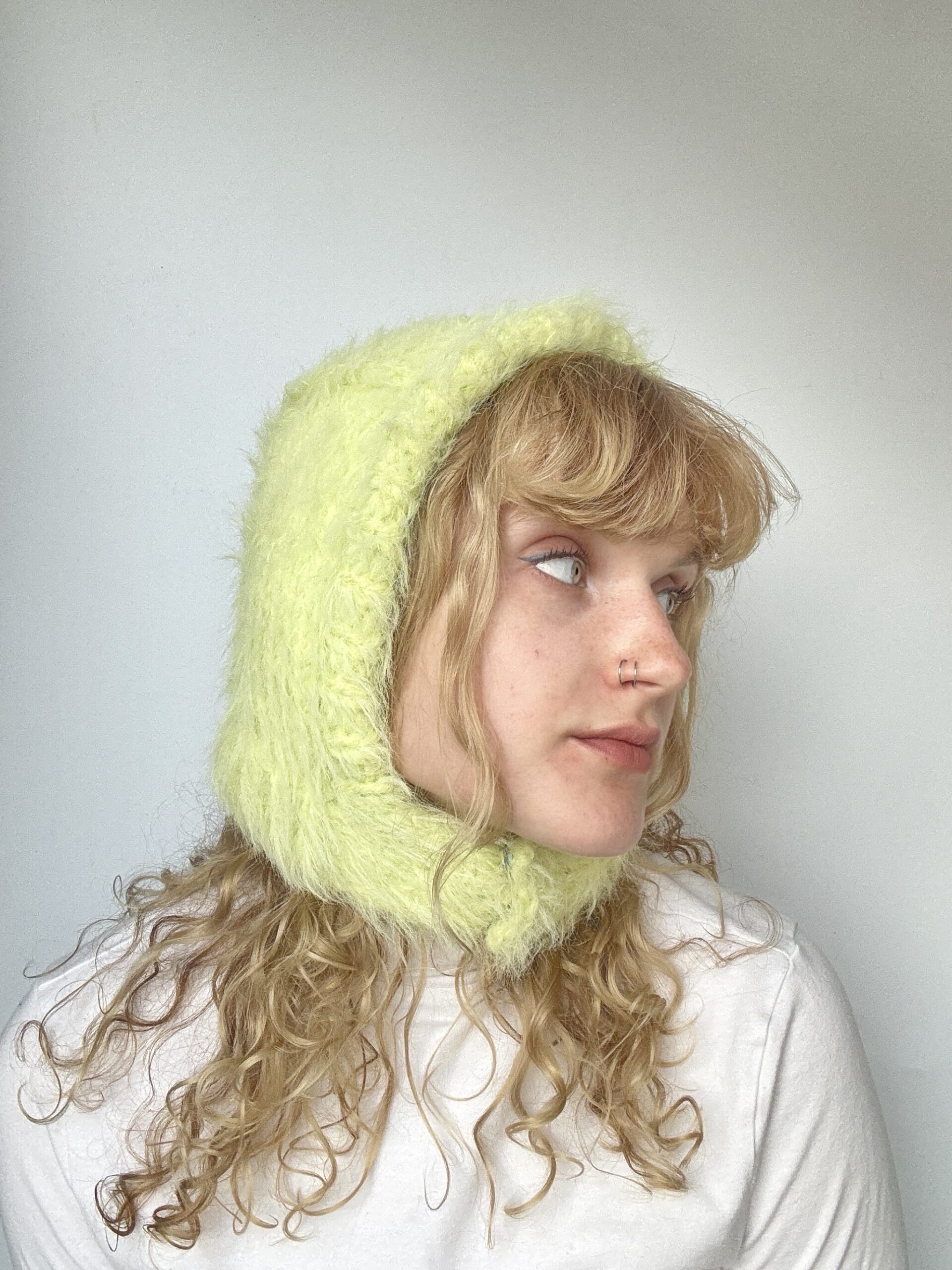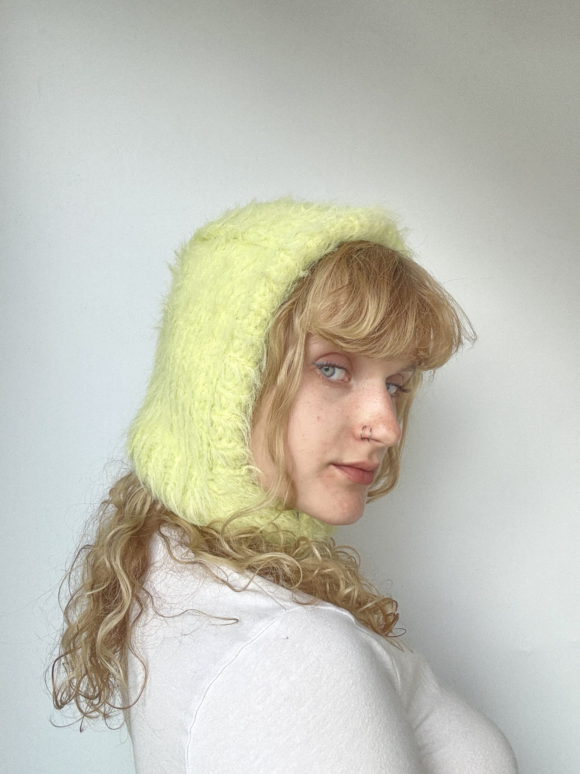 Затишний м’який чепець із пухнастої пряжі. Ніжний на дотик, гарно тримає тепло та додає образу слею взимку.