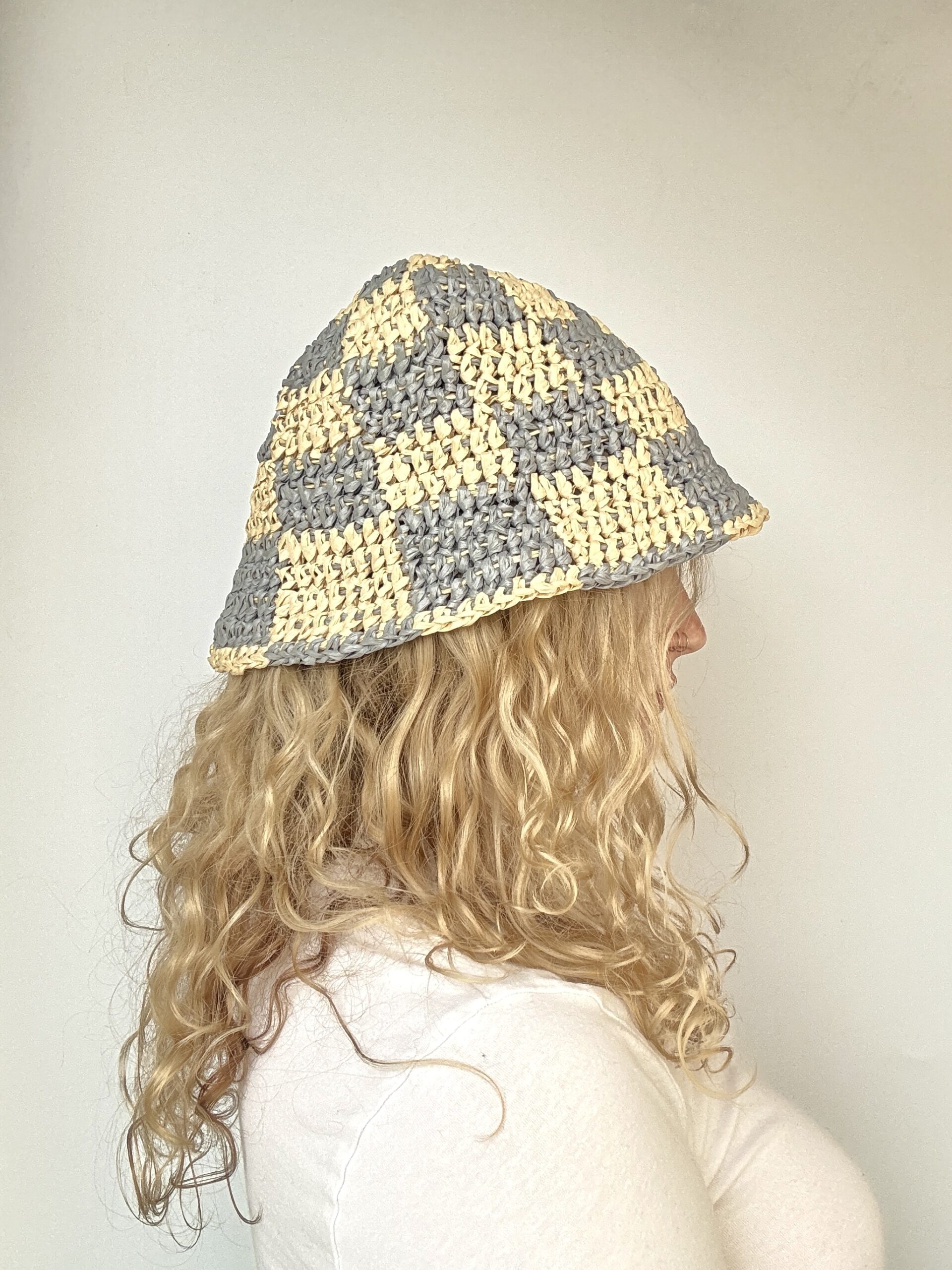 Панамка ручної роботи з натуральної рафії у стильному візерунку «шахова дошка». Легка, дихаюча та трендова – ідеальна для літа.